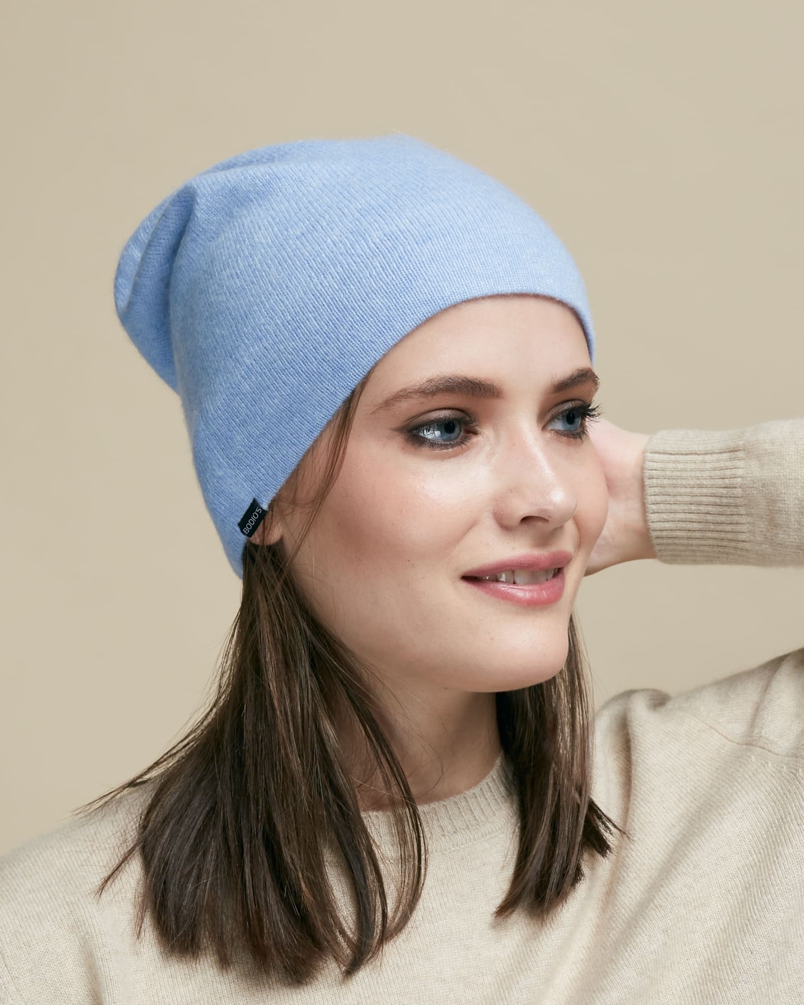 Двухсторонняя шапка 11041 из натурального кашемира — универсальная модель 2-в-1 в нежном сочетании голубого и кремового оттенков. Лаконичный дизайн и мягкий удлинённый силуэт подчёркивают современную эстетику и делают аксессуар базовым элементом гардероба. Возможность носить шапку на обе стороны позволяет легко менять настроение образа — от свежего акцентного до спокойного нейтрального.