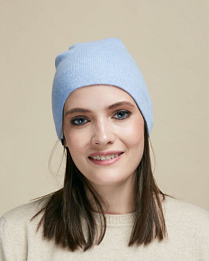 Шапка кашемировая двухсторонняя 11041 голубой/кремовый