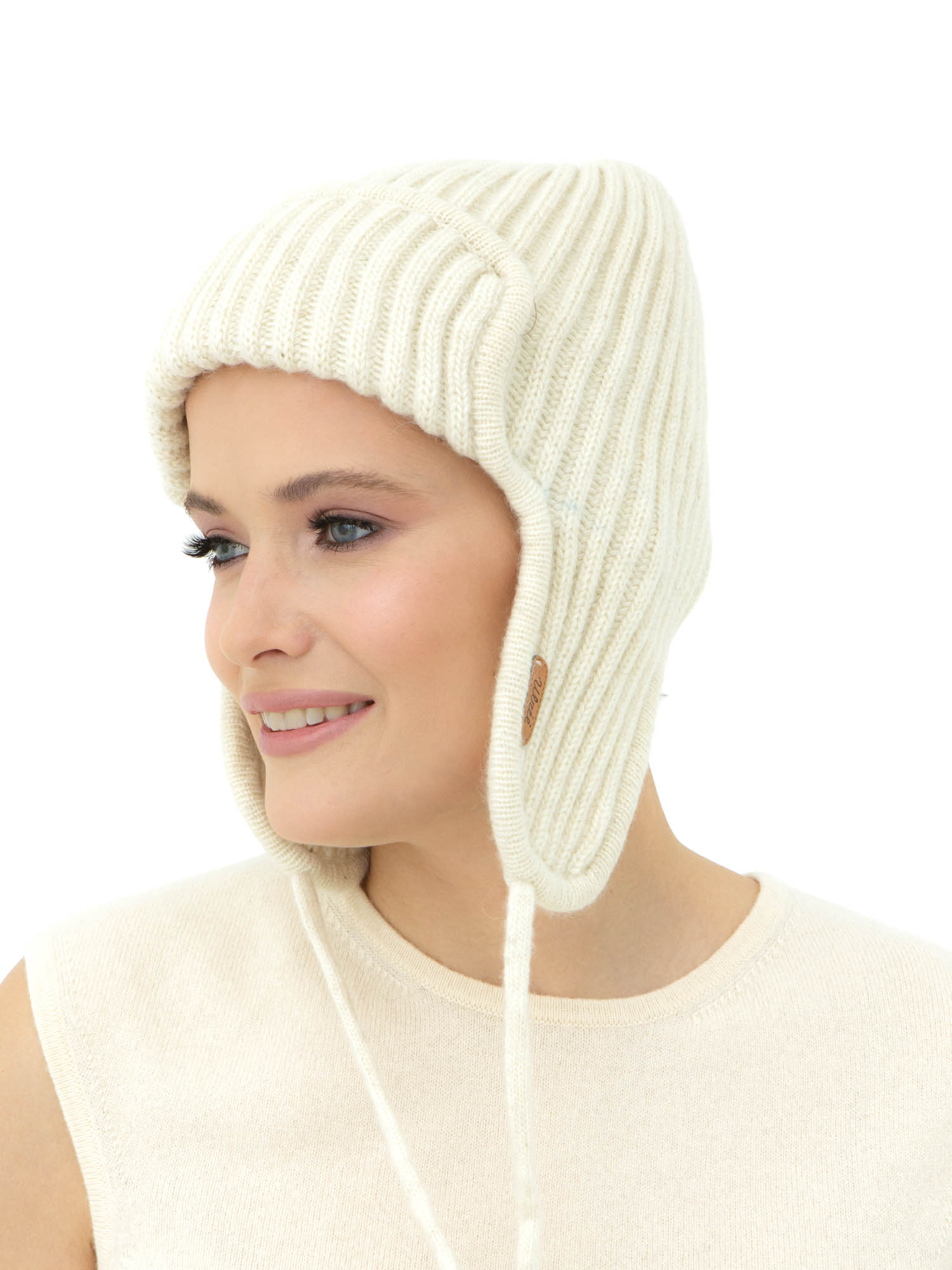 Ушанка 3875 из натуральной шерсти — элегантная модель в светлом кремовом оттенке, сочетающая комфорт и современный стиль. Лаконичная вертикальная вязка подчёркивает аккуратный силуэт, а удлинённые ушки создают дополнительную защиту от холода и ветра. Модель гармонично вписывается в базовый гардероб и подходит для повседневных зимних образов.