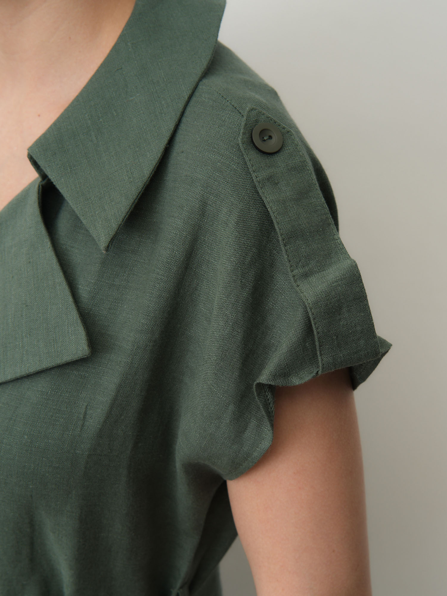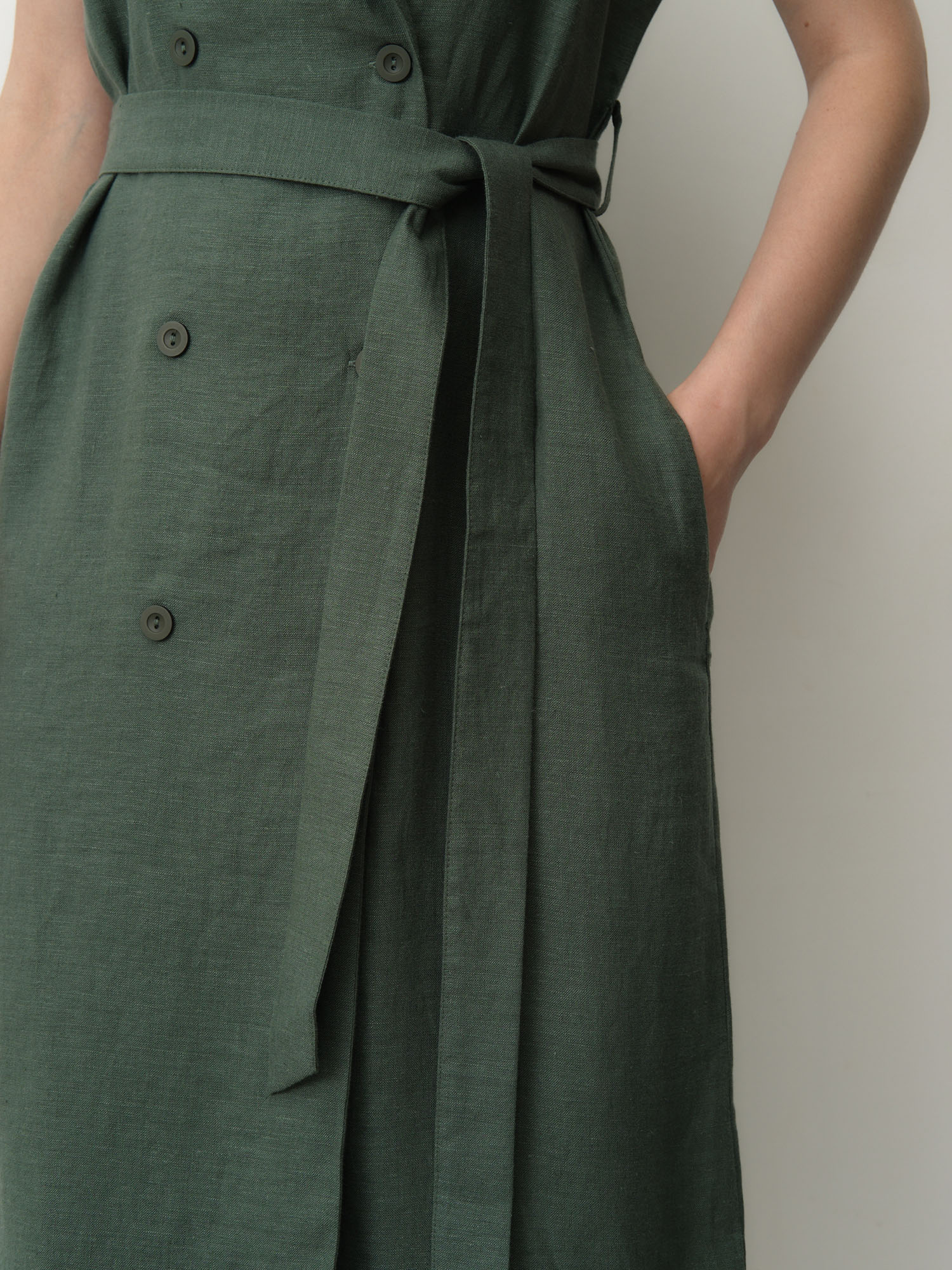 Застёжка на пуговицы, пояс в комплекте для регулировки посадки, боковые карманы, аккуратные швы, легкая текстура ткани.