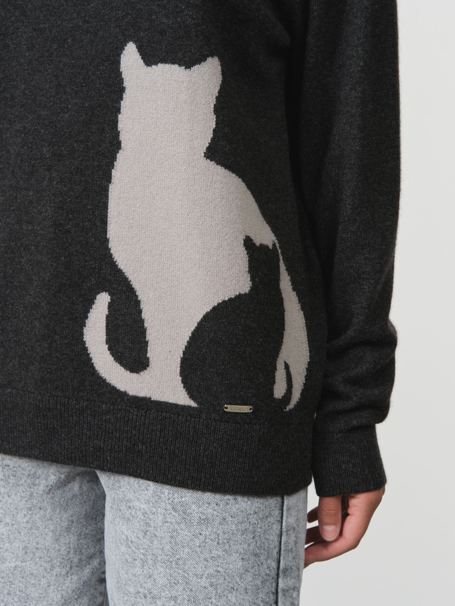 Свободный силуэт с классическим круглым вырезом. Контрастный жаккардовый рисунок добавляет индивидуальности и делает модель акцентной.