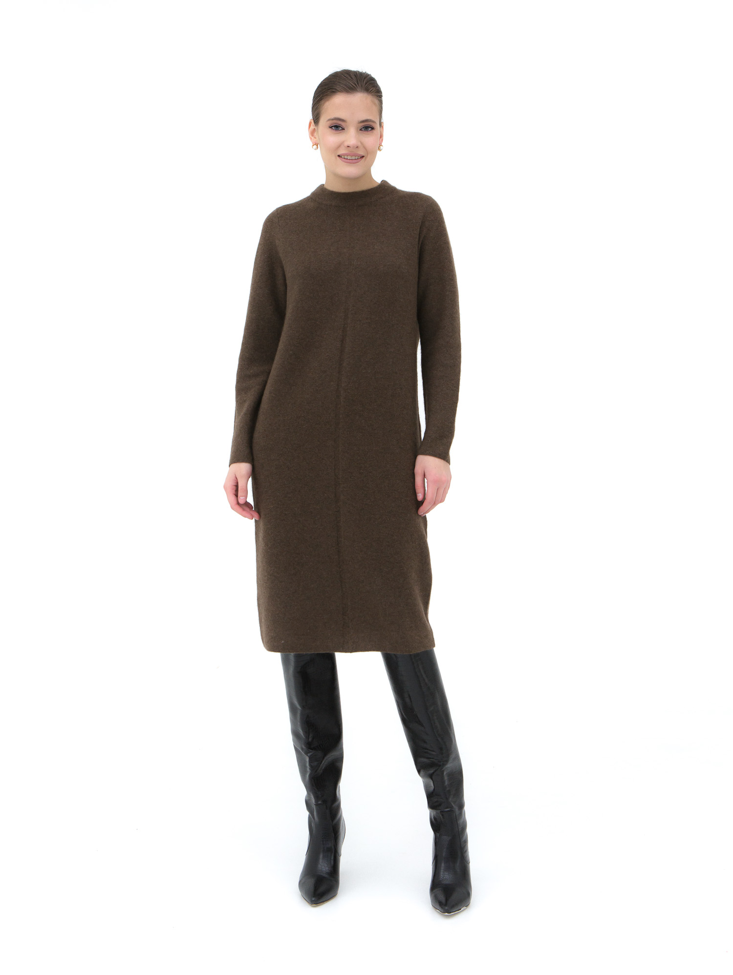 Платье приятное, теплое, почти не колется. Цвет светлее чем на картинке. На мой 46 подошёл размер М. На Рост 162 длина как на фото. Красиво сделана горловина. Посмотрю как будет в носке. Пока нравится |