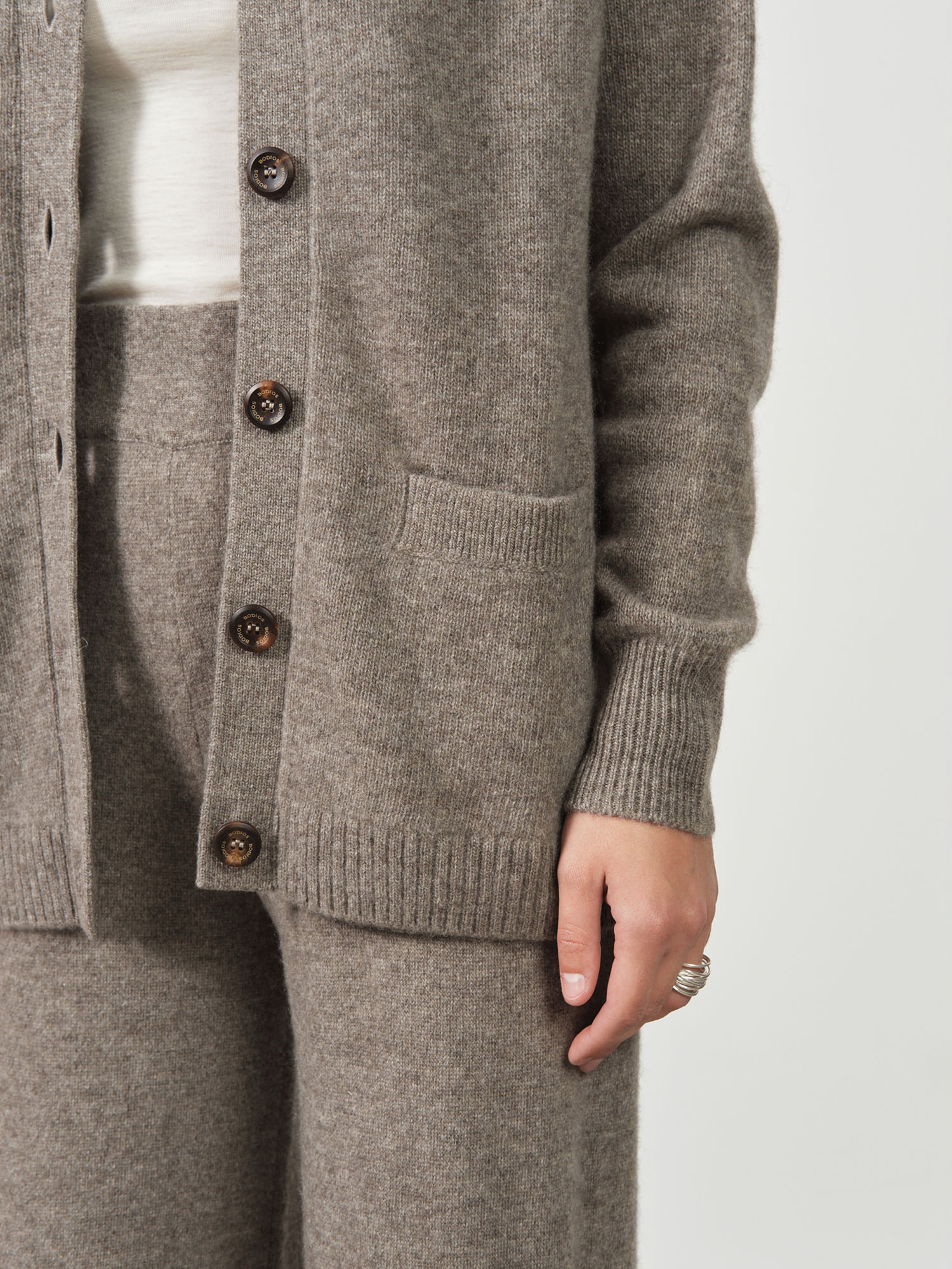 классический удлиненный V-образный кардиган на пуговицах с внешними карманами